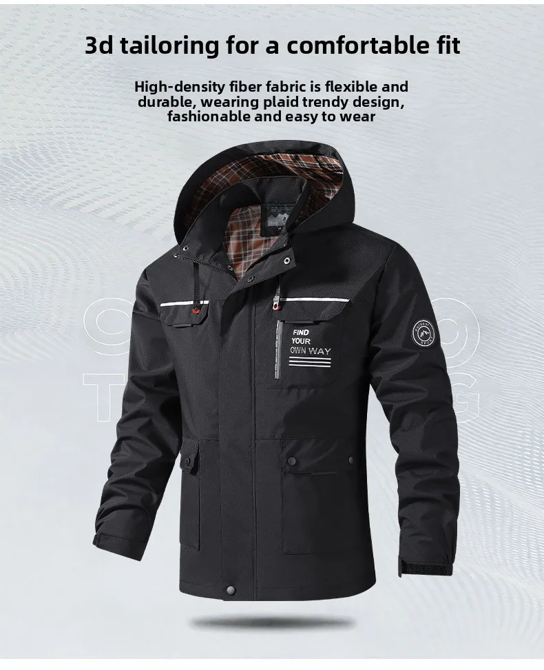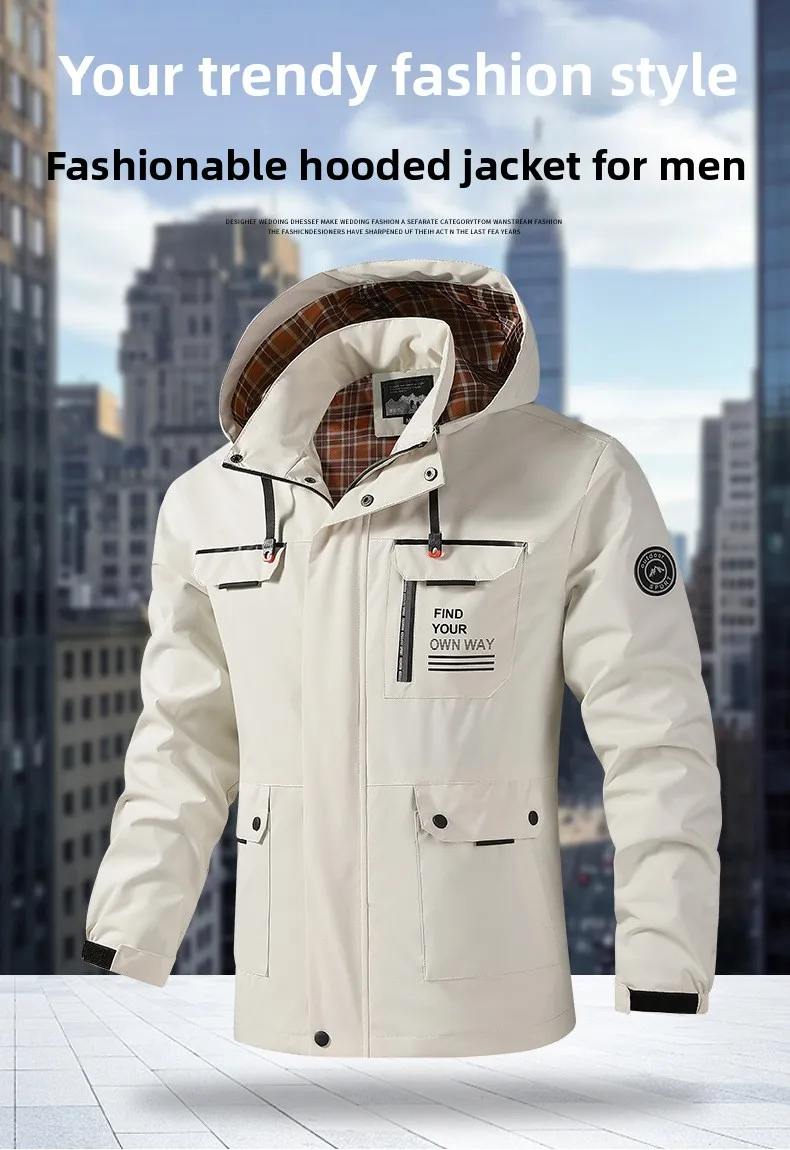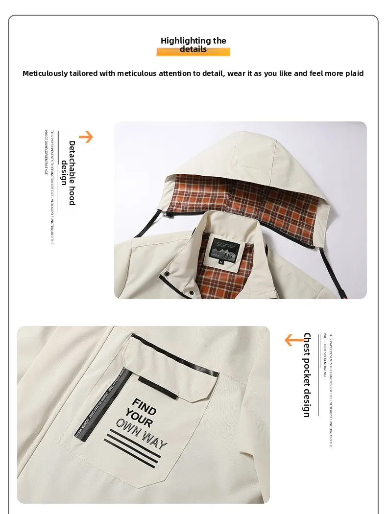 Featuring a detachable hood, this jacket provides versatility, allowing you to adjust to changing weather conditions.