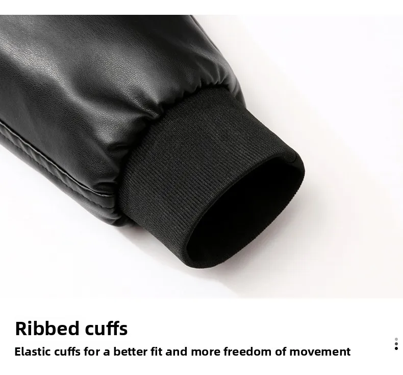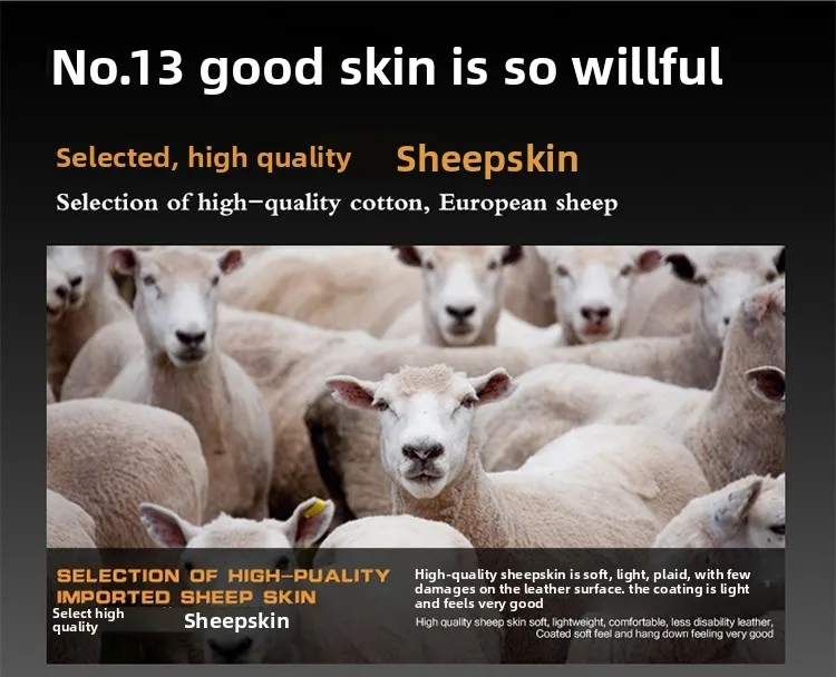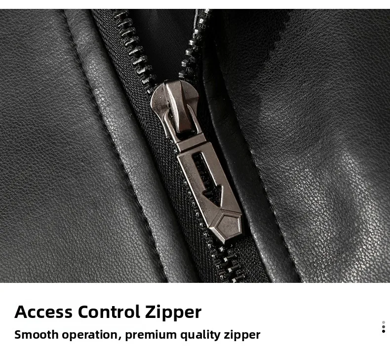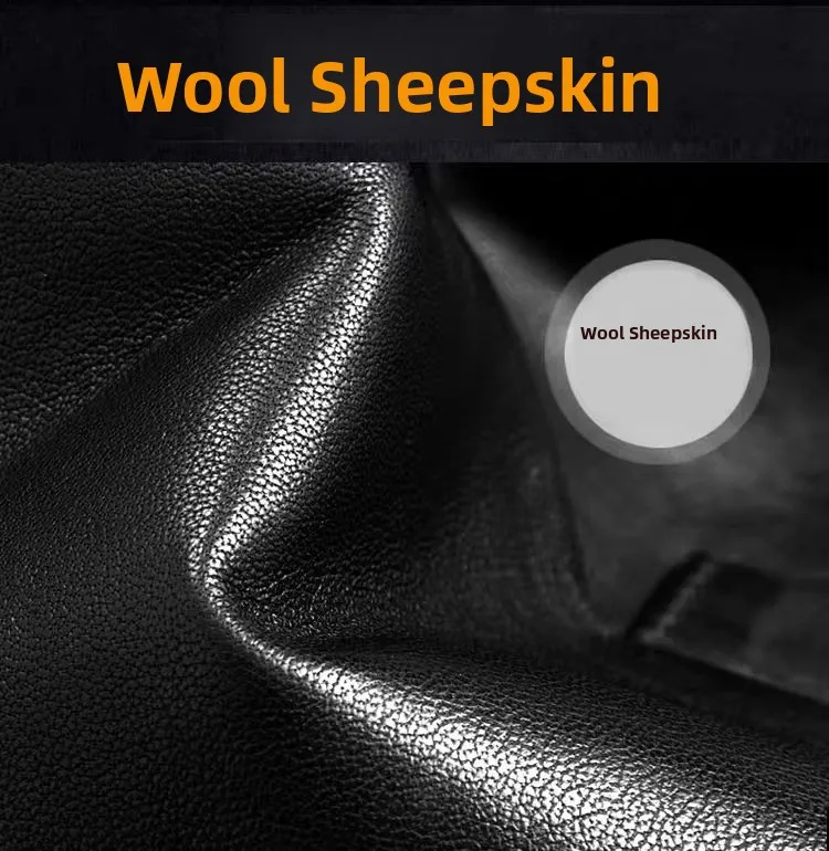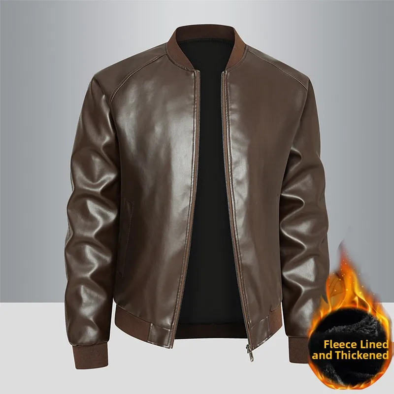 Haining Genuine Leather Jaet Men's Stand Collar Fce Lined Thiened Slim Fit Casual Trendy Motorcycle Jaet Coat