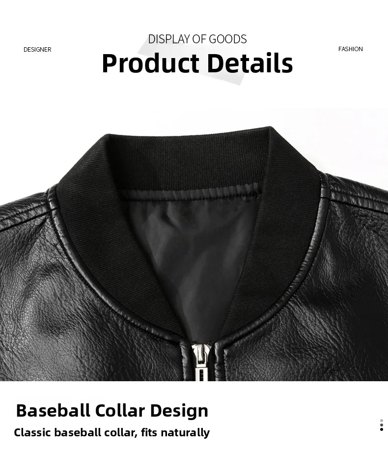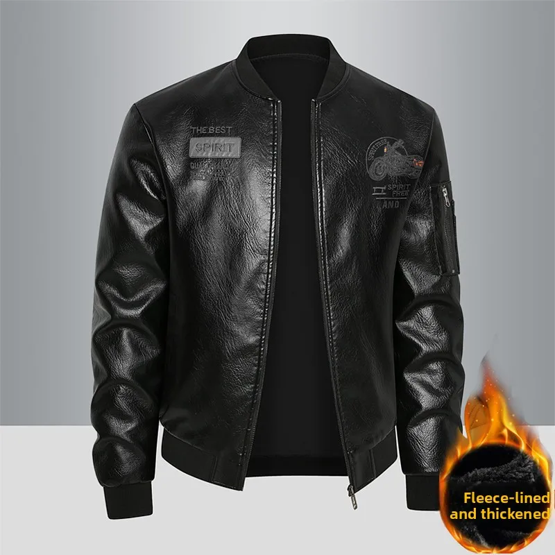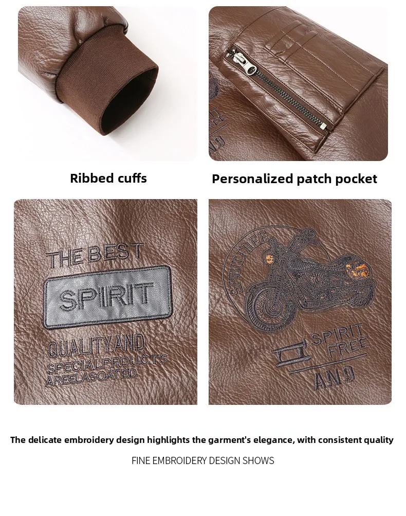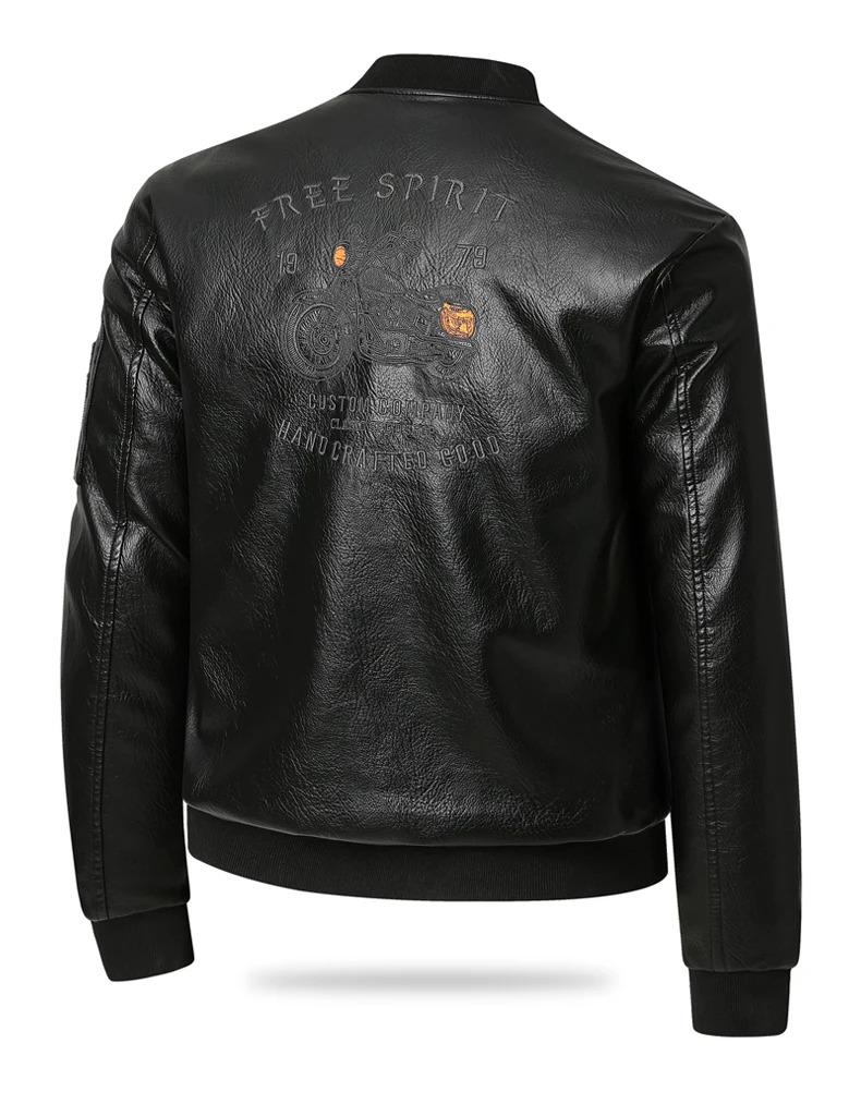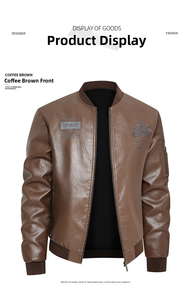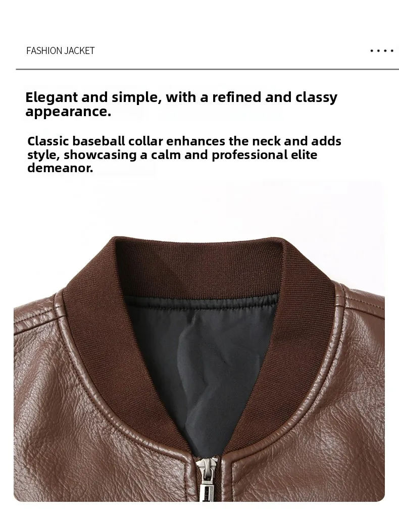 Men's Genuine Leather Jaet Baseball Collar Fce Lined Loose Casual Sli Motorcycle Jaet Embroidered Biker Coat